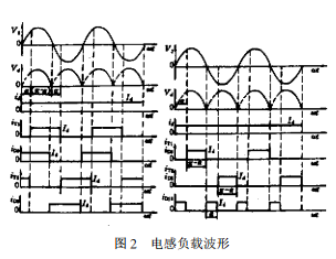 下次T1觸發(fā)導(dǎo)通后重復(fù)上述過(guò)程。根據(jù)各元件的導(dǎo)通情況,可知輸出電壓波形及各元件電流波形如圖2所示。