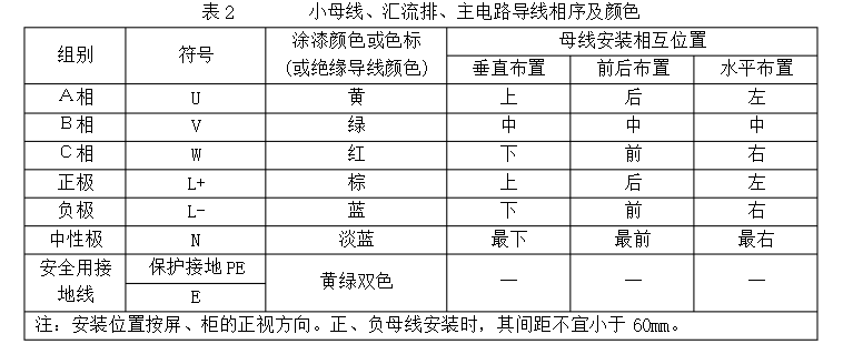 12 小母線、匯流排、主電路導(dǎo)線相序及色彩應(yīng)符合表3規(guī)則。