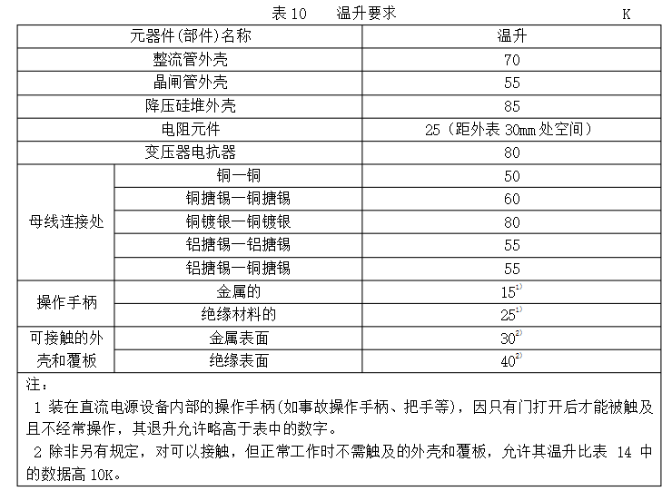 當(dāng)環(huán)境溫度為15~35℃,產(chǎn)品輸出額外電壓和額外電流,并輸入電壓為額外電壓的110%時(shí),其各元器件的溫升不得超過表10的規(guī)則。并且發(fā)熱元件的溫度不該影響周圍元器件的正常工作和損壞。