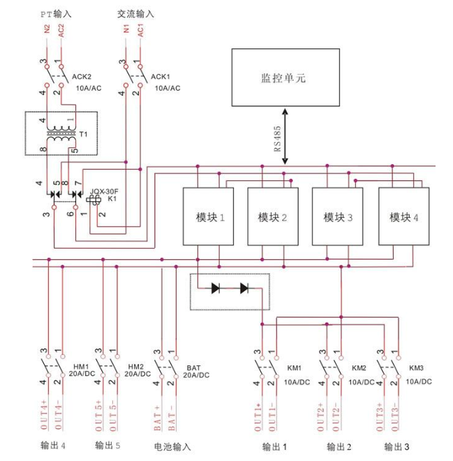 將控制電壓和合閘電壓分配給各負載支路,可實現(xiàn)多種母線的接線方式,并具有配電監(jiān)控、直流絕緣監(jiān)測、開關量監(jiān)測等。