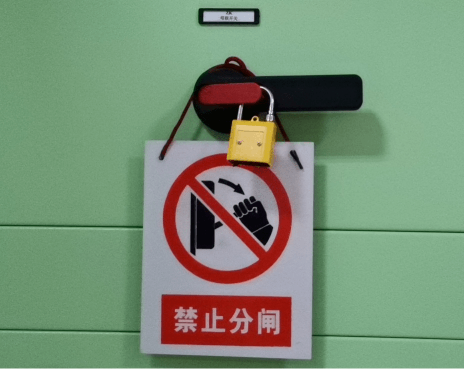 2. 兩段母線并列后,在合上的母聯(lián)開關(guān)把手上掛“禁止分閘!”標(biāo)示牌,并在把手操作桿上加掛機(jī)械鎖。