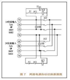上面介紹的兩路溝通電源切換是在正常情況下的兩路供電時(shí),但因?yàn)槲遗_(tái)的高壓電源進(jìn)線只有一路,即直流電源系統(tǒng)只有l#溝通輸入電源。當(dāng)1#溝通輸人電源失電時(shí),因?yàn)闆]有2#溝通輸入電源,所以無(wú)法完成正常的兩路電源的切換。下面我們所剖析的直流屏缺點(diǎn),即使在有兩路溝通電源供電的情況下,仍然無(wú)法完成兩路電源的自動(dòng)切換。