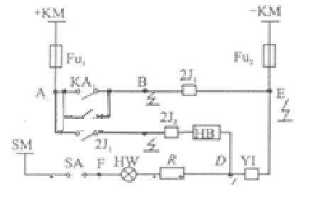 如圖1所示,當圖中的A點和B點同時接地,相當于AB兩點通過大地相連接起來,中間繼電器2J1動作生成斷路器的跳閘。同理,當圖中的A點和C點同時接地,或圖中的A點、D點同時接地均可能生成斷路器的跳閘。